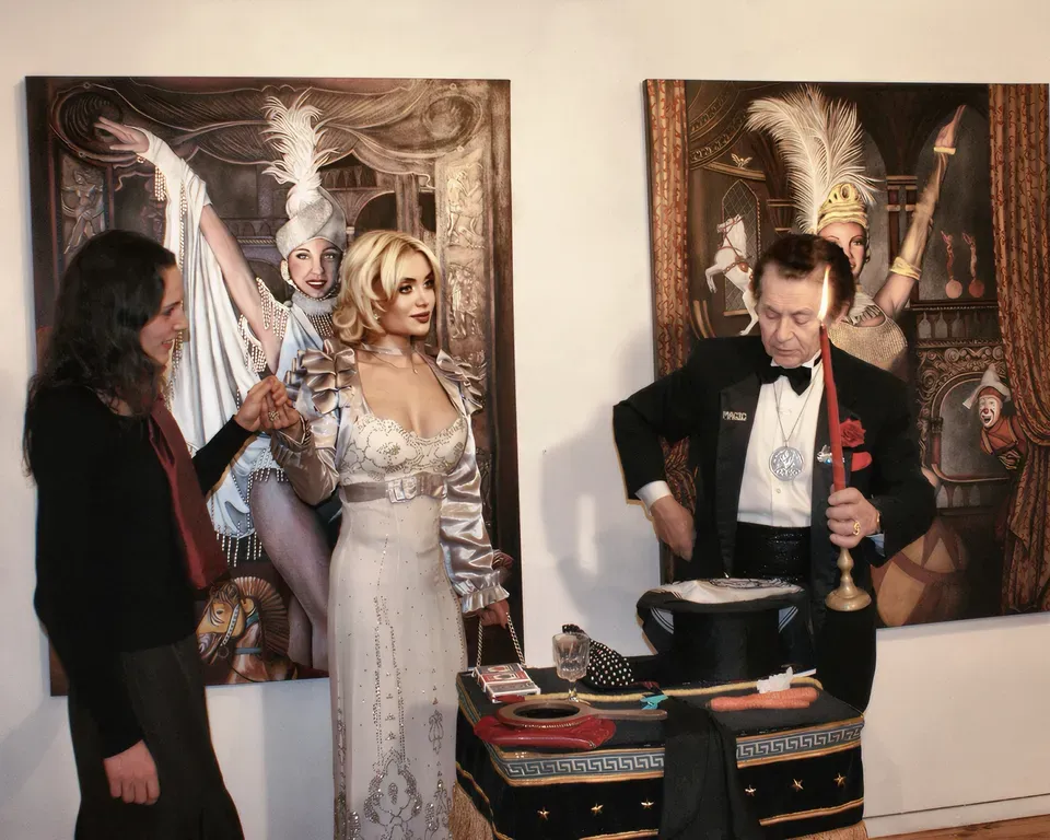 The opening reception deepened this exploration through a live collaboration between the artist and Kamarr the Magician.  Kamarr is a legendary performer who holds a record for appearing on The Late Show with David Letterman over 40 times. Through interactive illusions and shared magic, the exhibition transcends the traditional gallery experience, turning the act of viewing into a participatory journey through the extraordinary.