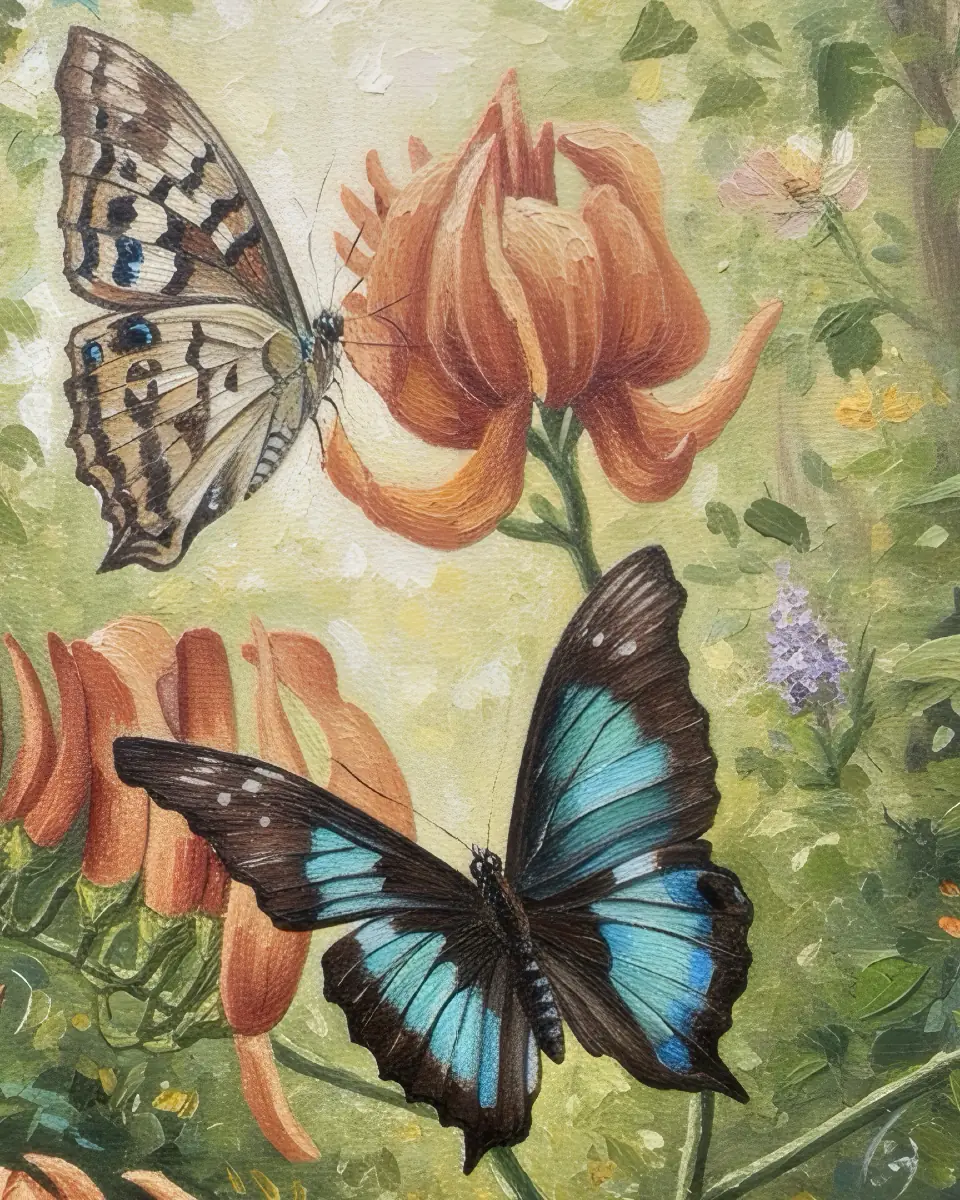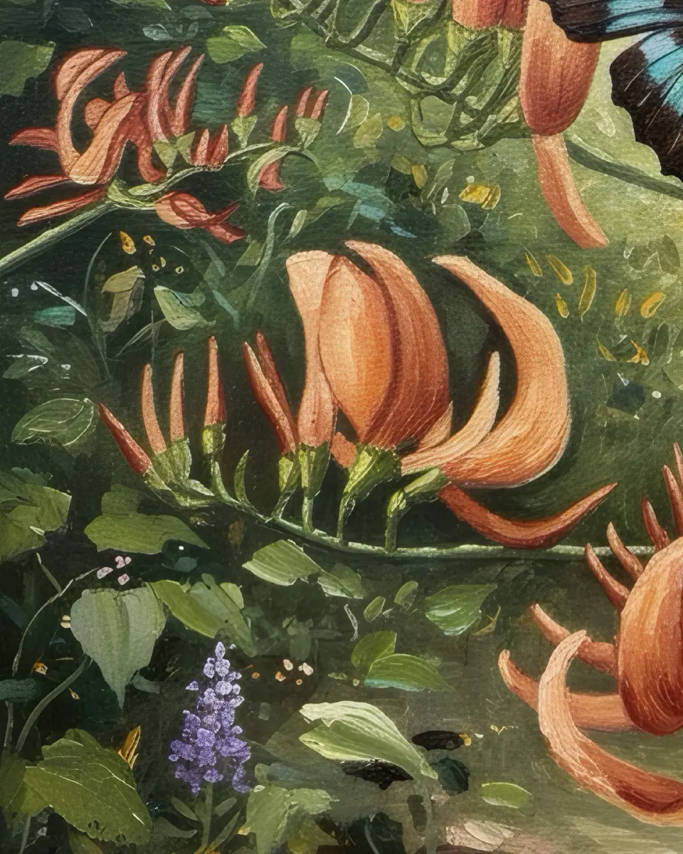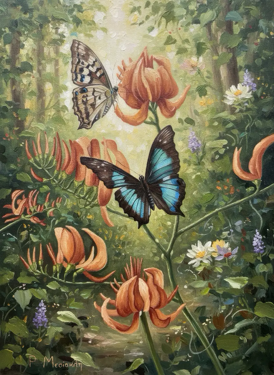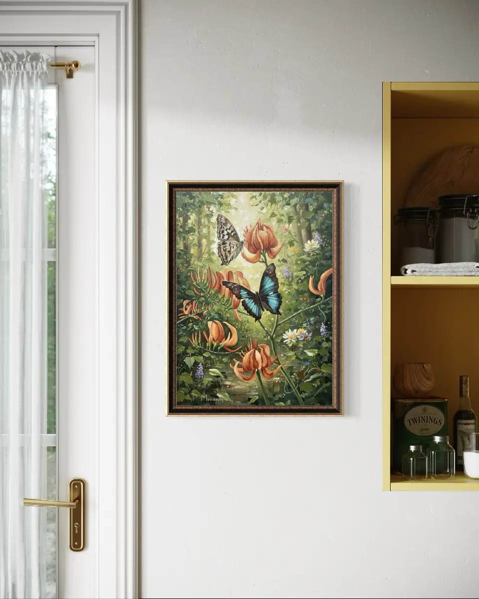 This work combines evocative atmosphere with a lyrical treatment of the wilderness, becoming a joyous celebration of natural life. Its focus lies in the delicate interplay between light and color - a harmony that captures the fleeting poetry of nature in motion.