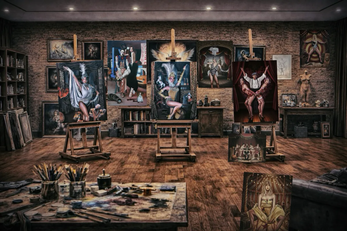 Her mastery of figurative realism, combined with symbolic depth and dramatic light, positions her work at the intersection of contemporary painting and performance culture. The large scale, controlled luminosity, and meticulous execution of her paintings create a commanding presence suited for significant collections and refined interiors.